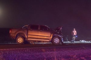 Según la Policía, el Gol circulaba en dirección norte y chocó de frente con una pick-up Ford Ranger, cuyo único ocupante era Walter March, un conocido empresario hotelero de la zona del Valle, quien se dirigía hcia Trelew y sufrió una fractura expuesta de tobillo y fue derivado de urgencia al Hospital Ísola de Puerto Madryn.