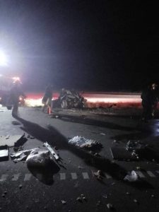 El primer reporte policial indica que los fallecidos son 2 personas mayores de edad y dos menores. El accidente ocurrió alrededor de las 22:40 entre un VW Gol Trend, conducido por Enrique García, que falleció en el acto. La otra víctima mayor de edad es Eva Regina García; en tanto que dos niñas hijas de la pareja, de entre 4 y 7 años, también fallecieron en el accidente.
