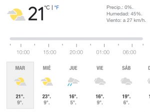 Según datos meteorológicos para esta jornada la capital tendrá una temperatura máxima de 21 grados y mínima de 9, SIN VIENTOS.m con cielo parcialmente soleado.