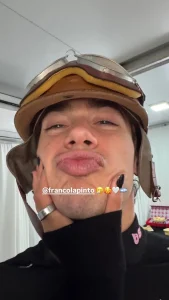 Franco se encuentra en Buenos Aires protagonizando un evento histórico para el deporte motor nacional: luego de 14 años, la Fórmula 1 volvió a girar por las calles de la ciudad. Ante más de medio millón de personas reunidas en un circuito callejero armado entre las avenidas Del Libertador y Sarmiento, el pilarense no solo manejó el Lotus E20 de la escudería Alpine, sino que también tuvo el honor de conducir la mítica «Flecha de Plata» de Juan Manuel Fangio, utilizando justamente la réplica del casco original del pentacampeón mundial que se ve en la postal amorosa.