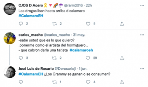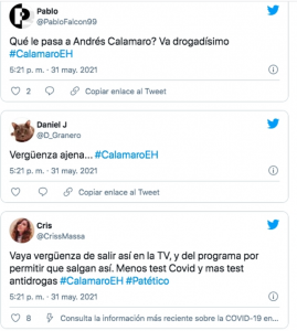Las redes sociales y los medios españoles se hicieron eco de las declaraciones «inconexas y llamativas». Un claro ejemplo de esto fue la respuesta que dio cuando le consultaron qué había sentido al grabar con Julio Iglesias. «Me vibraba el cu… de sólo pensar que iba a salir a cantar con él. Había que estar a la altura de la leyenda» declaró Calamaro.