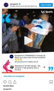 Luego de la aparición del fanático, la cuenta de la señal televisiva viralizó el video y fue el propio Lionel Messi quien a través de su cuenta de Instagram indicó como «Terrible tatuaje».