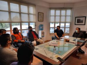De la reunión participaron el vicepresidente Juan Silva, la asesora de presidencia Karina F Raynoldi, el jefe de Conservación Mariano Coronel y los ingenieros Matías Fernández y Roberto Lillo. Por el lado de la Comuna, el coordinador de Corrralones de SOPU Fernando Millapel, Pedro Agüero de Obras Viales, Luis Vargas, Ariel Palomo y Mario Gómez, responsables de áreas operativas.