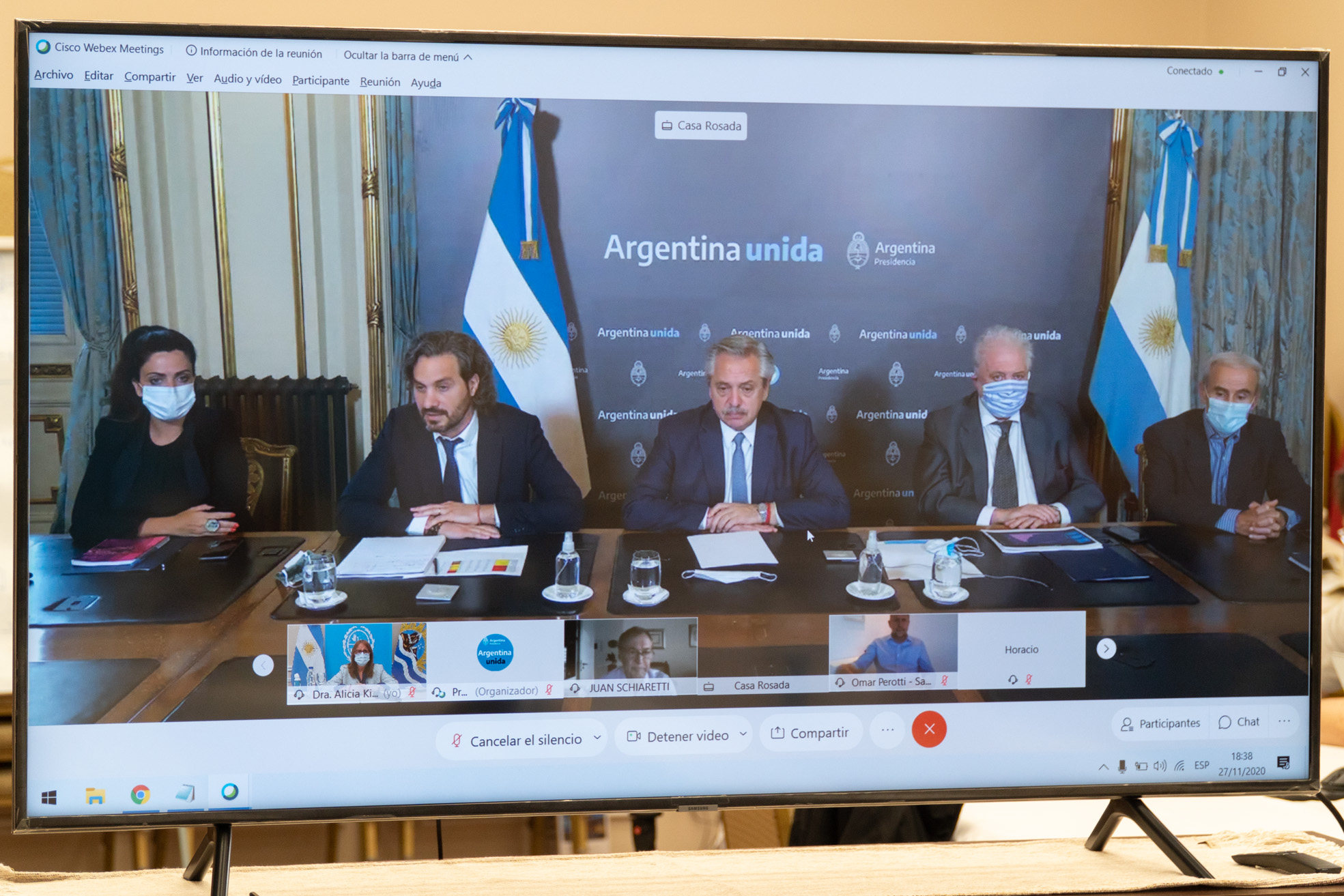 Durante la tarde del viernes el presidente encabezó una reunión donde hizo anuncios respecto del nuevo decreto y del plan de vacunación. Lo hizo acompañado por su Jefe de Gabinete, Santiago Cafiero, el Ministro de Salud, Ginés González García y la titular del PAMI, Luana Volnovich.
