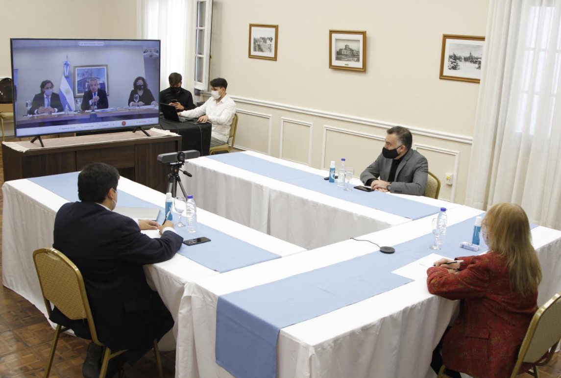 Desde Casa de Gobierno, la primera mandataria santacruceña fue acompañada por el jefe de Gabinete de Ministros, Leonardo Álvarez; y el ministro de Salud y Ambiente, Claudio García; mientras que el presidente Alberto Fernández se encontraba junto al jefe de Gabinete, Santiago Cafiero; la ministra de Salud de Nación, Carla Vizzotti; y el ministro del Interior, Eduardo “Wado” de Pedro.