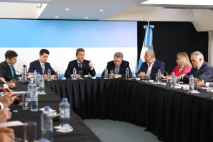 Al finalizar, tres de los gobernadores presentes brindaron una conferencia de prensa y afirmaron: “Las 18 provincias coincidimos que el proyecto político de Sergio Massa es el más conveniente para transformar la República Argentina, aprovechar sus recursos naturales y profundizar sus proyectos productivos de forma federal”.