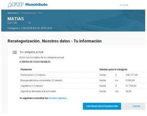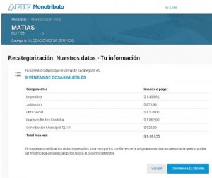 En este paso el sistema te muestra la categoría que te corresponde según los datos que aportaste.