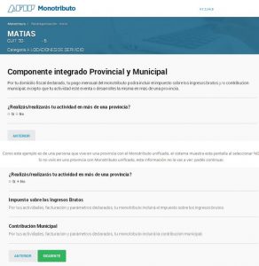 En este ejemplo el contribuyente se encuentra en una provincia con Monotributo unificado, si no es tu caso, no te va a informar sobre el componente integrado.