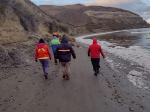 Ayer por la noche operarios de Protección Civil buscó en la costa local utilizando reflectores, mientras que hoy por la mañana hicieron lo propio en Punta Loyola, junto a vecinos.