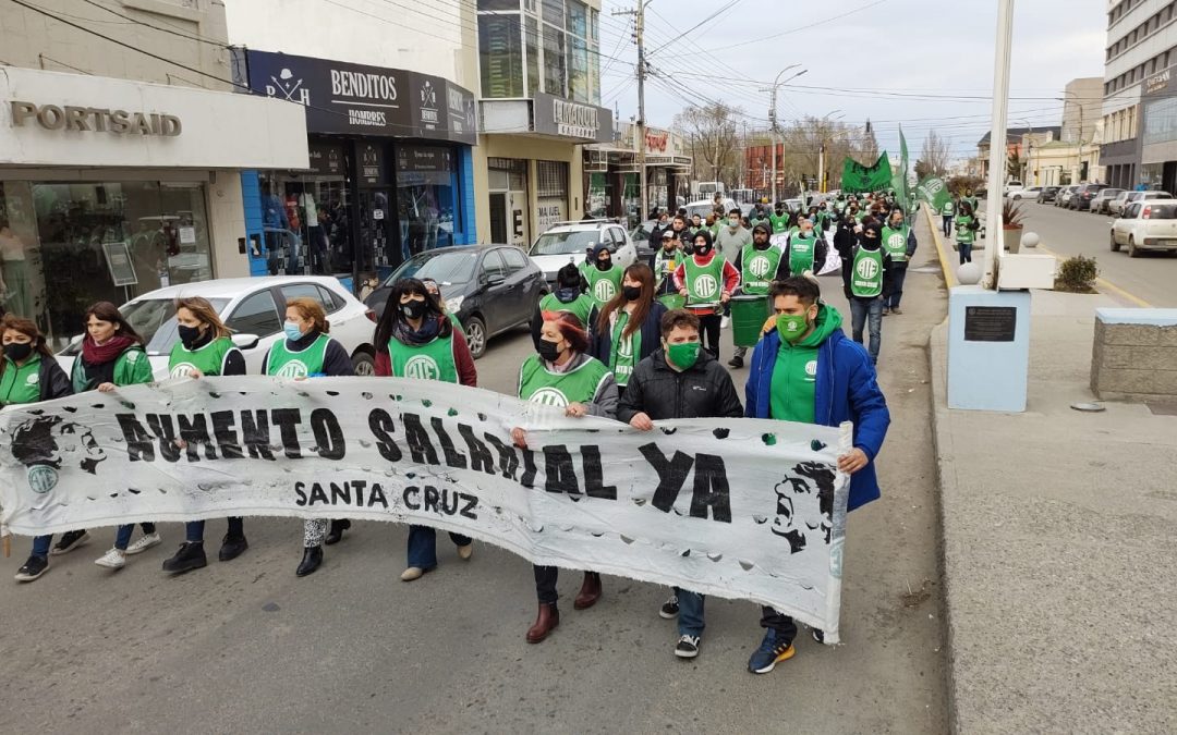 En el marco de un paro provincial con movilización en toda la provincia de Santa Cruz, ATE en Rio Gallegos movilizó al Ministerio de Economía con una importante convocatoria de trabajadores, a la espera de una nueva y superadora oferta salarial por parte del Ejecutivo Provincial.