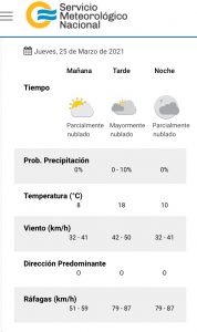 El tema será el viento nuevamente con ráfagas que oscilarán durante la tarde y noche entre 50 y superior a 80 km/h.