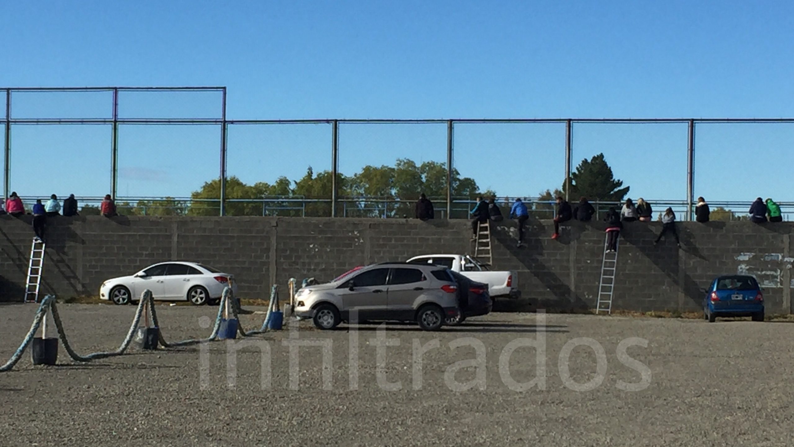 Sin embargo, estas imágenes demuestran la conducta naturalizada por grandes y chicos, familias, mujeres, varones, que llegan a las canchas con escaleras para subirse a los paredones y ver los partidos de los suyos.