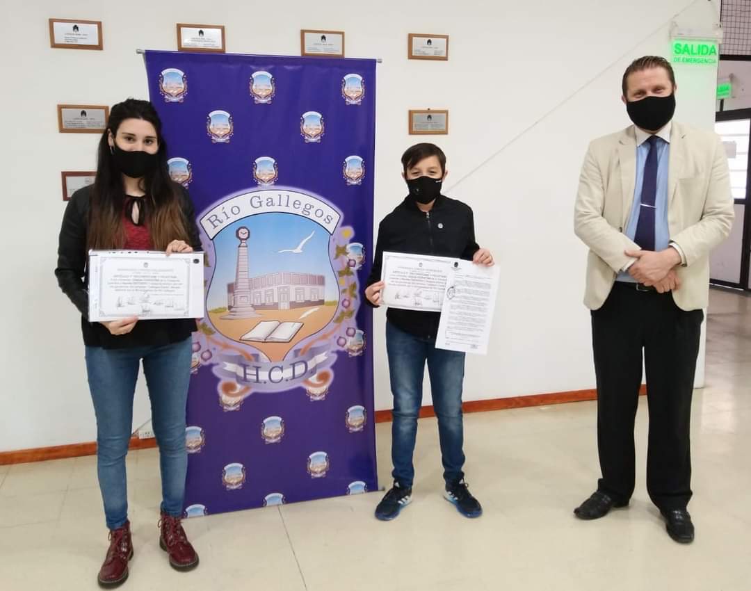 Ayer el concejal del Frente de Todos Abg Leonardo Fuhr entregó Certificados de Reconocimiento a Narella Ontivero y Octavio Ferreyra y lo hizo junto a la Presidenta del Honorable Concejo Deliberante Paola Costa y el concejal Julio Arabena, hicieron entrega del Certificado de Reconocimiento a los ganadores del certamen artístico “Gallegos Canta”, en la categoría adultos Narella Ontivero y en la Categoria juveniles Octavio Ferreyra.