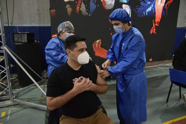 El diputado provincial Martín Chávez recibió hoy la primera dosis de la vacuna contra el Covid-19 en el Vacunatorio montado por la Municipalidad de Río Gallegos en el Gimnasio 17 de Octubre.