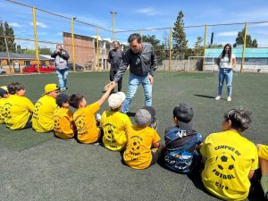 El intendente Grasso saludando a los pequeños futbolistas de la institución