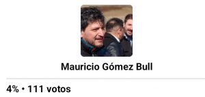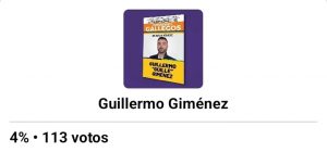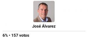 Lo siguen José Daniel Álvarez con el 6% y 157 votos, Roquel 4% 120 votos, Guillermo Gimenez 4 % 113 votos, Gómez Bull 4% 111 votos, Harasic 4% 109 votos.