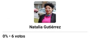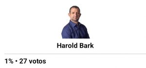 Bark 1% 27 votos. Santiago Gómez 20 votos, Mauricio Neira 16 votos, Juan Alvarado 13 votos, Blassioto 10 votos, Natalia Gutiérrez 6 votos.