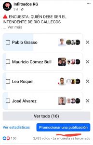 La Encuesta fue presentada este viernes y culminó hoy domingo. El alcance de la Encuesta superó las 6563 personas, con 7028 mil impresiones, y votaron 2435 personas.