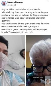 Sus familiares lo mostraron en redes sociales y al verlo saludando junto a su padre en selfie emocionó a gran parte de la comunidad.