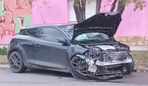 Pasadas las 7 horas de esta mañana otra vez se produjo en la capital un fuerte incidente vial. Pasó en el cruce de calles Belgrano y Tucumán (hay semáforos) donde conductores hombre y mujer mayores de edad chocaron fuertemente sus rodados Corsa y Megane. Uno de ellos volcó y terminó cerca de la vivienda ubicada en esquina.
