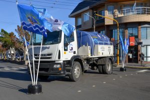 Río Gallegos, 05 de mayo de 2021 (MRG) – Este mediodía, frente al Palacio Municipal, se presentó la nueva adquisición que realizó la Comuna con fondos propios. Se trata de un camión con hidrojet, un vehículo semipesado marca Iveco, OKM equipado con tanque y bomba marca “SCORZA” con capacidad de 8000 litros, el que fuera requerido por el Municipio según especificaciones técnicas solicitadas en la licitación pública Nro. 12 del año 2020. Este equipo es apto para realizar tareas de lavado, rastreo de desagües cloacales, pluviales y acequias, con manguera de alta presión y caudal.