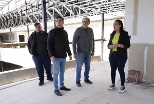 Durante la visita, el intendente supervisó los trabajos de techado del patio central, que cuenta con una cubierta traslúcida, y observó los preparativos para la construcción de la rampa que conectará la planta baja con la planta alta.