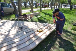 Por otra parte, se informó que personal de la Dirección de Construcciones procede al llenado de las columnas que sostendrán los puentes sobre el lago artificial en la Plaza San Martín. En simultáneo, Metalúrgica avanza sobre las barandas que se instalarán en la parte más profunda del espejo de agua, y Carpintería continúa con la instalación de los decks en distintos puntos de la plaza.