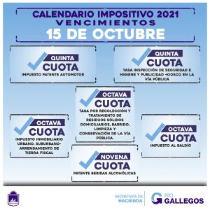 El 15 de octubre vencen los siguientes impuestos y tasas del calendario impositivo 2021: