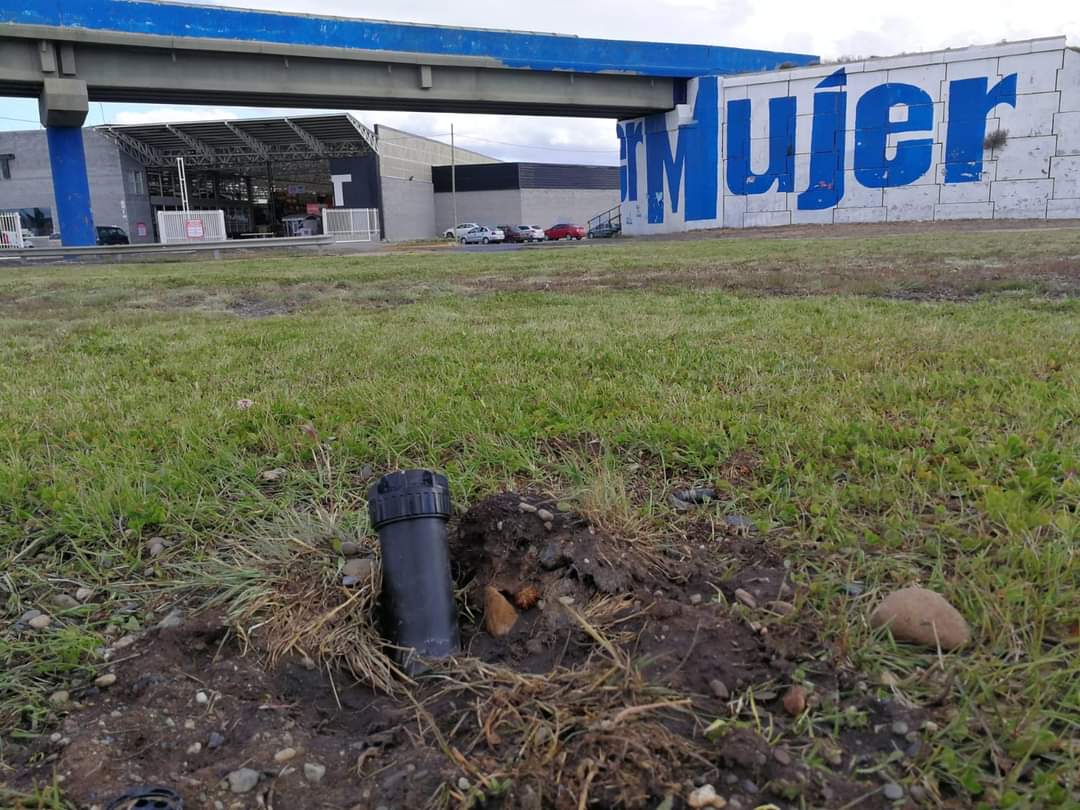 Cuesta creer que algún individuo o grupo se acerque al bulevar del acceso a la ciudad por autovía 17 de Octubre y rompa el sistema de riego, PERO SUCEDE.