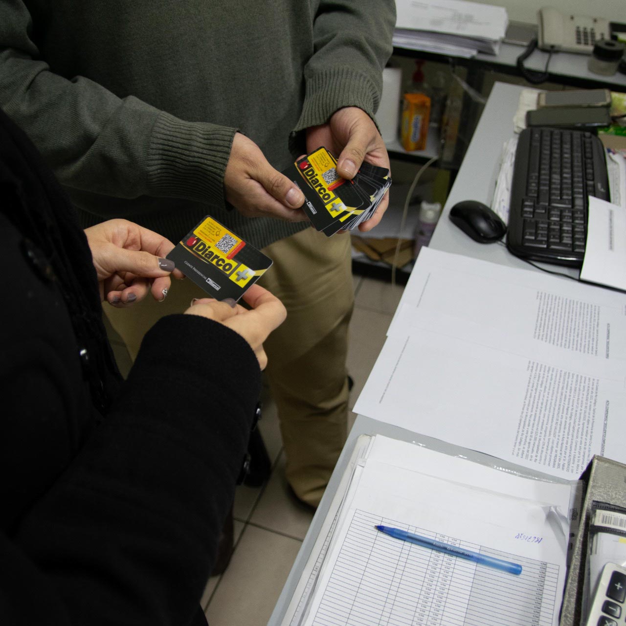 La Secretaria de Producción, Comercio e Industria del Municipio de Río Gallegos, Moira Lanesán Sancho, junto a su equipo de trabajo, comenzó con la tarea de inscripción y entrega de las primeras cuarenta tarjetas de descuento en compras realizadas en Diarco para los trabajadores municipales.