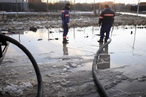 Se utilizaron máquinas motoniveladoras para retirar el hielo por un lado, y camiones cisternas y camión con bomba de vacío para el desagote, especialmente en la zona de las calles 27 y 17 del Barrio San Benito y 30 y 39 del barrio Patagonia.