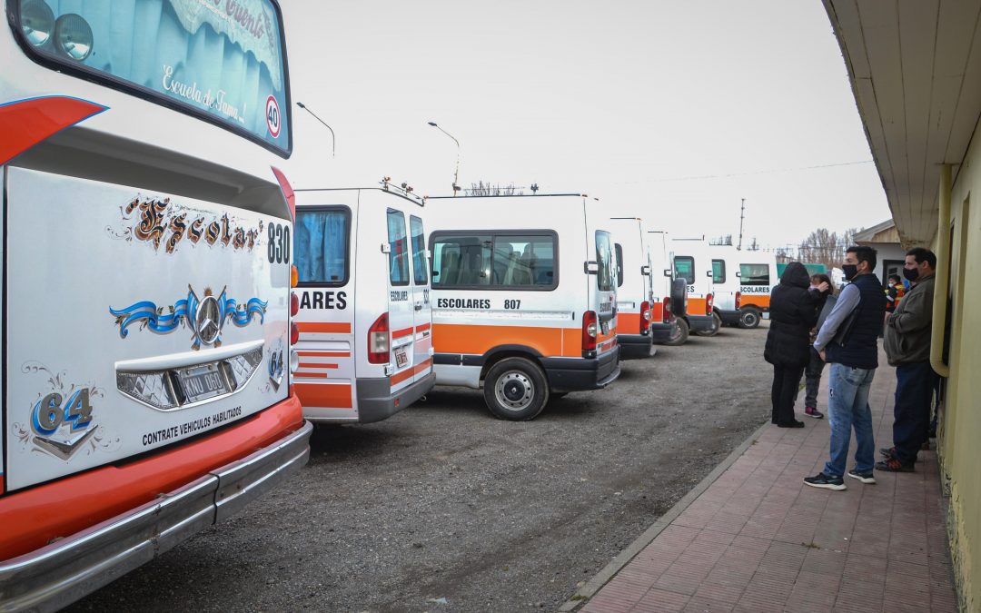 En la jornada el Intendente Pablo Grasso hizo efectivo el anuncio de la vuelta al funcionamiento de las unidades de transportes escolares en la ciudad de Río Gallegos. La medida fue dada a conocer en el marco de una reunión mantenida entre los representantes de dueños y trabajadores de transportes escolares que se reunieron con Grasso en su despacho. La habilitación de las unidades para que comiencen desde el miércoles a prestar servicios se dio tras la inspección estética de las mismas que se llevó a cabo esta tarde por parte de la Dirección de Transportes Públicos.