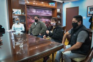 En la reunión con el jefe comunal participaron Gerardo Acevedo, presidente de la Asociación Civil de Transportes Escolares y los transportistas Alejandra Fernández y Patricio Alvarado. También estuvieron presentes la Directora de Tránsito Municipal Bárbara Biott, la jefa de Transporte Público Ana Fernández, el Diputado por el Pueblo Eloy Echazu, la Secretaria de Producción, Comercio e Industria Moira Lanesán Sancho y el Intendente de Puerto Deseado Gustavo González, quien se encuentra en la ciudad para realizar distintas gestiones.