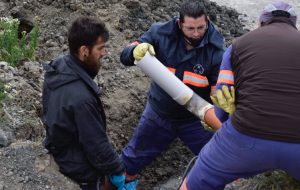 A su vez, personal del área de Mantenimiento de Redes Pluviocloacales trabajó con la ayuda de un camión volcador, una retroexcavadora y un camión atmosférico, en la reparación y cambio de caño cloacal en la intersección de las calles Lola Mora y Zapiola.