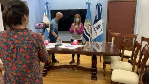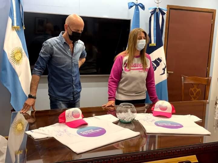 Hoy, en vivo desde el edificio central, la Secretaria de Coordinación Ejecutiva Claudia Picuntureo y el Director General de Hacienda Sergio Peralta, realizaron el sorteo de las cinco gorras y cinco remeras firmadas por el artista Rodrigo Tapari, que estuvo presente en el Festival 136° Aniversario de Río Gallegos.
