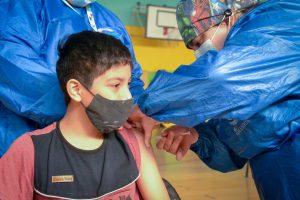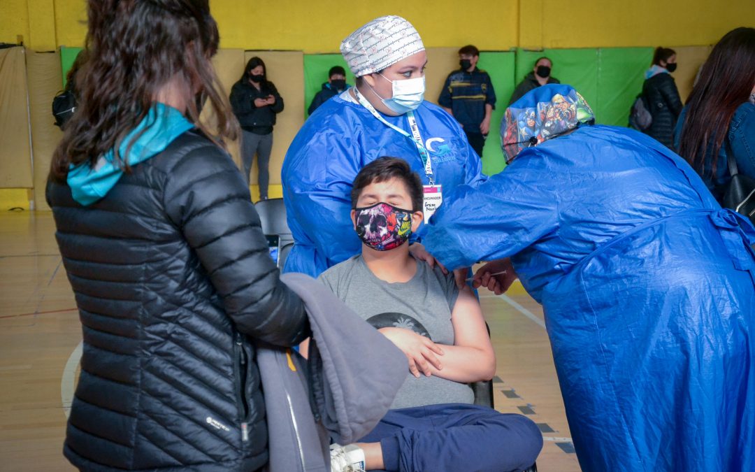 En el lugar, se avanza con la inoculación de menores de edad. Esta mañana, los profesionales inmunizaban a niños y niñas de 7 a 11 años, sin factores de riesgo, con la primera dosis de Sinopharm y a adolescentes de 12 a 17 años con la vacuna Pfizer.