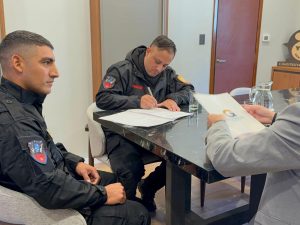 El intendente de Río Gallegos firmó un convenio de colaboración con el comisario mayor Pablo César Aguirre, jefe del Grupo Especial Zona Sur de la Policía de la Provincia de Santa Cruz, con el objetivo de facilitar el uso del Natatorio Municipal Celina “Chela” Gay para el desarrollo de actividades deportivas.
