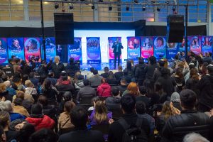 El intendente Pablo Grasso encabezó la ceremonia en la que se dio a conocer la grilla de artistas para celebrar el 137º Aniversario de Río Gallegos. El gimnasio se vio colmado de vecinas y vecinos que siguieron las alternativas del acto. Los artistas de las jornadas del 11 y 18 (apertura y cierre) serán dados a conocer más adelante.