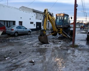 El Municipio de Río Gallegos trabaja en el despeje de las calles. La autovía 17 de Octubre, que conecta a gran parte de los barrios de la ciudad, fue uno de los puntos en los que se realizaron tareas con una retroexcavadora para mejorar la transitabilidad.