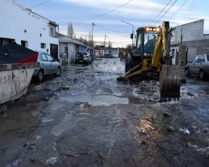 El Municipio de Río Gallegos trabaja en el despeje de las calles. La autovía 17 de Octubre, que conecta a gran parte de los barrios de la ciudad, fue uno de los puntos en los que se realizaron tareas con una retroexcavadora para mejorar la transitabilidad.