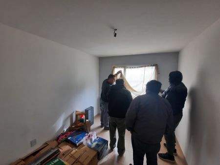 Personal técnico del Instituto de Desarrollo Urbano y Vivienda, realiza tareas de relevamiento de las viviendas de los barrios Patagonia y Santa Cruz de la ciudad de Río Gallegos, que fueron recientemente adjudicadas por el Gobierno Provincial.