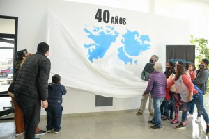 Por último, autoridades provinciales junto con el presidente del Centro de Veteranos de Guerra de Malvinas descubrieron en las instalaciones, un mural en conmemoración por los 40° Aniversario realizado por la artista santacruceña Lorena Sanguinetti.