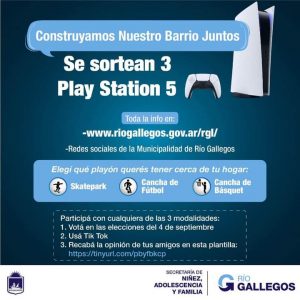 Para tal fin, la Municipalidad de Río Gallegos ha decidido estimular la participación entre los jóvenes mediante el sorteo de tres consolas de Play Station 5 para las diversas formas establecidas.