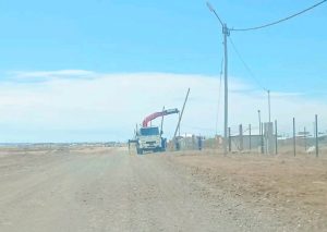 En el marco de las tareas de ampliación y mantenimiento del tendido eléctrico, operarios de la empresa Servicios Públicos Sociedad del Estado (SPSE), realizaron tareas de instalación de postes y cableado en el barrio Ayres Argentinos en Río Gallegos.