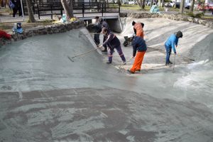 En el lugar la directora de Construcciones, Micaela Soto, explicó que “desde hace un par de días venimos trabajando en la Plaza San Martín. Después del receso invernal había que reacondicionarlo. Se procedió a la limpieza del lago artificial en su totalidad, y ahora se está recubriendo con una membrana que se aplica en dos manos y que sirve para impermeabilizarla y que no se formen hongos. Se cambiaron además todas las estructuras y se verifica la instalación de cables para las luces y la fuente. Trabaja en el lugar personal de Albañilería, Metalúrgica e Instalaciones. El viernes próximo está estimado que comencemos con el llenado del lago. Este proceso demora dos o tres días hasta que llegue al nivel. En esta labor, además, se instalarán unos filtros para no tener problemas con las hojas y que no se tapen los desagües”, dijo.