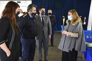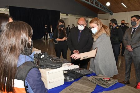 El acto entrega contó con todas las medidas de bioseguridad correspondientes en el marco de la situación epidemiológica actual y se realizó en la Escuela de la Policía de Santa Cruz «Eduardo Victoriano Taret» con la presencia del jefe de dicha institución, el Comisario General (R) José Luis Cortés; el subsecretario de Protección Civil y Abordaje Integral de Emergencias y Catástrofes, Diego Farías; la subsecretaria de Gestión Administrativa, Victoria Aguilar.