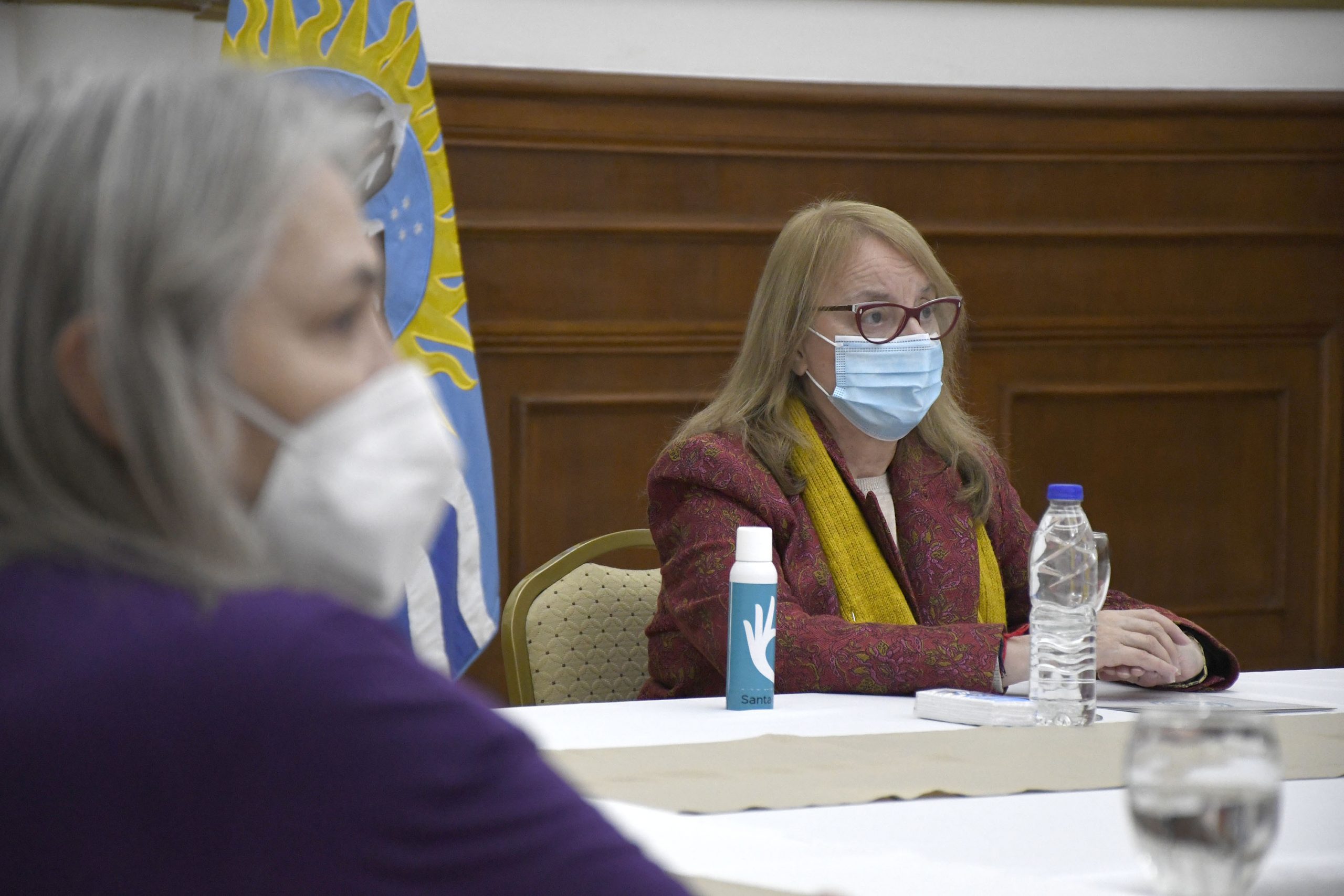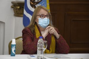 La primera mandataria santacruceña estuvo acompañada del jefe de Gabinete de Ministros, Leonardo Álvarez; y lxs ministrxs de Economía, Finanzas a Infraestructura, Ignacio Perincioli; y de Desarrollo Social, Bárbara Weinzettel.