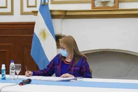 Desde Casa de Gobierno, acompañaron a la Gobernadora, el vicegobernador Eugenio Quiroga; el jefe de Gabinete, Leonardo Álvarez; el ministro de Economía, Finanzas e Infraestructura, Ignacio Perincioli; la ministra de Desarrollo Social, Bárbara Weinzenttel; el secretario de Hacienda, Bruno Ruggeri; la presidente de la Caja de Previsión Social, Silvia Bande; y el delegado de la Regional Sur del Anses, Pablo Ruiz.