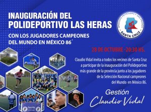 Este jueves, el deporte santacruceño vivirà una jornada histórica, de la mano de Claudio Vidal y el Sindicato Petrolero. La llegada de los futbolistas campeones del mundial México 86, servirá de ocasión para una seguidilla de actividades destinadas a potenciar el deporte en nuestra provincia.