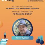 17:00 Pavel Oyarzún, escritor y docente chileno, presentará “El paso del diablo” que recupera los últimos días de la gran huelga general de 1921 y la huida de los huelguistas liderados por Antonio Soto en la que intentan cruzar la cordillera perseguidos por las tropas del 10 de Caballería.